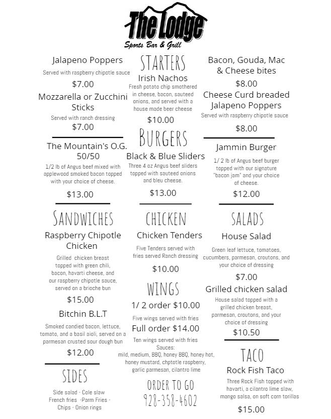 Welcome to The Lodge Sports Bar & Grill, your ultimate destination in Pinetop for great food, cold drinks, and endless entertainment! Nestled at 857 E White Mountain Blvd, we invite you to enjoy our mouthwatering menu featuring signature wings, burgers, and excellent cocktails. Gather your friends and family for a fun night out with three pool tables, darts, and live music from talented DJs every Wednesday, Friday, and Saturday. Don't miss our lively family karaoke nights on Tuesdays! With accessible facilities and a welcoming atmosphere, we can't wait to meet you and make your experience unforgettable!
